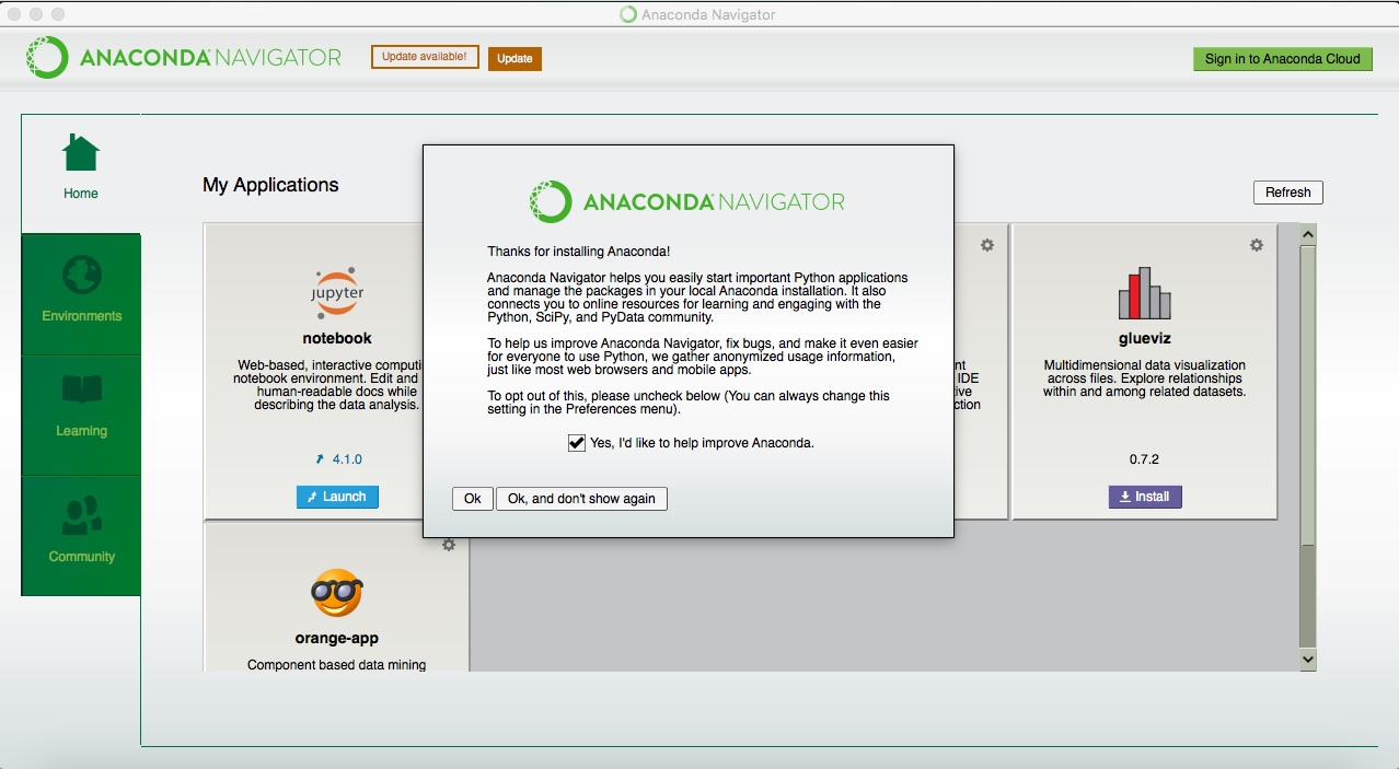 Step 9: Next, let's see if the install was successful. Find the Anaconda Navigator icon on your desktop or on the Launchpad.