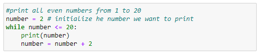 We need to have at least one condition to implement the loop and make sure we don't get an infinite (or endless) loop. Be sure to indent the statements to repeat in the loop.