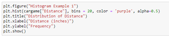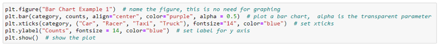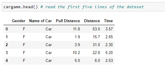 In this section, we use the dataset cargame.csv to demonstrate how to create basic graphical displays in Python. Below is the scenario for the data: