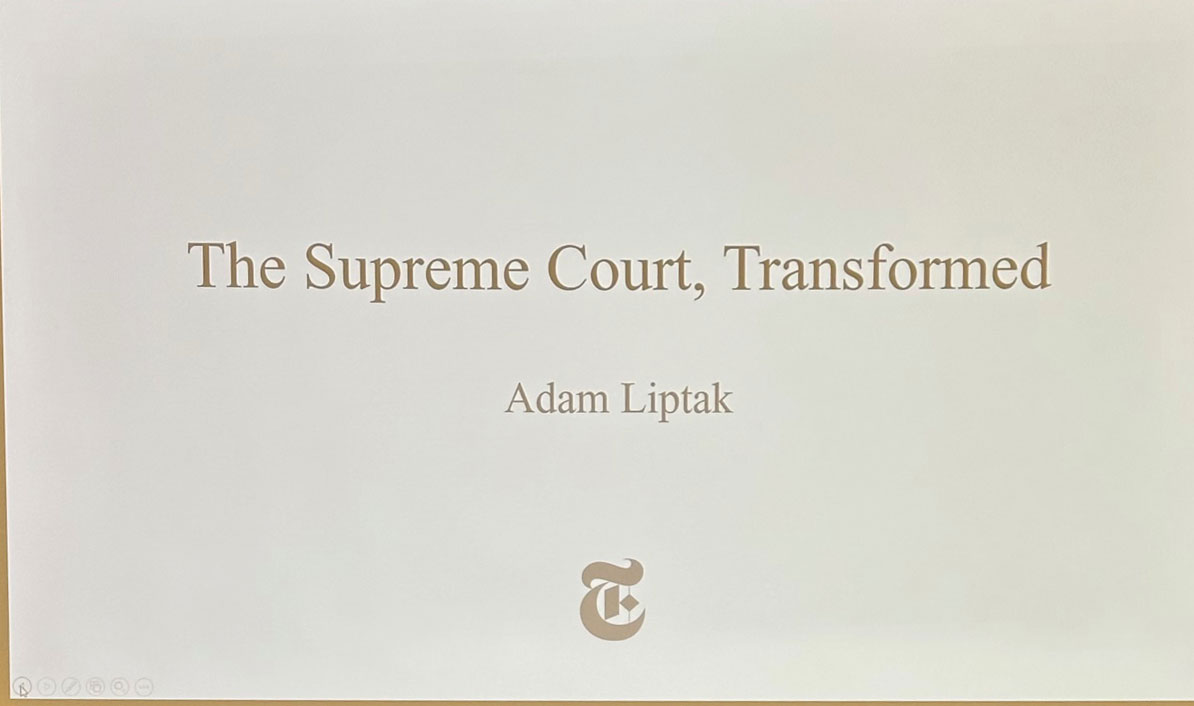 Adam Liptak, New York Times, "Reflections on Law, Politics and the Supreme Court"